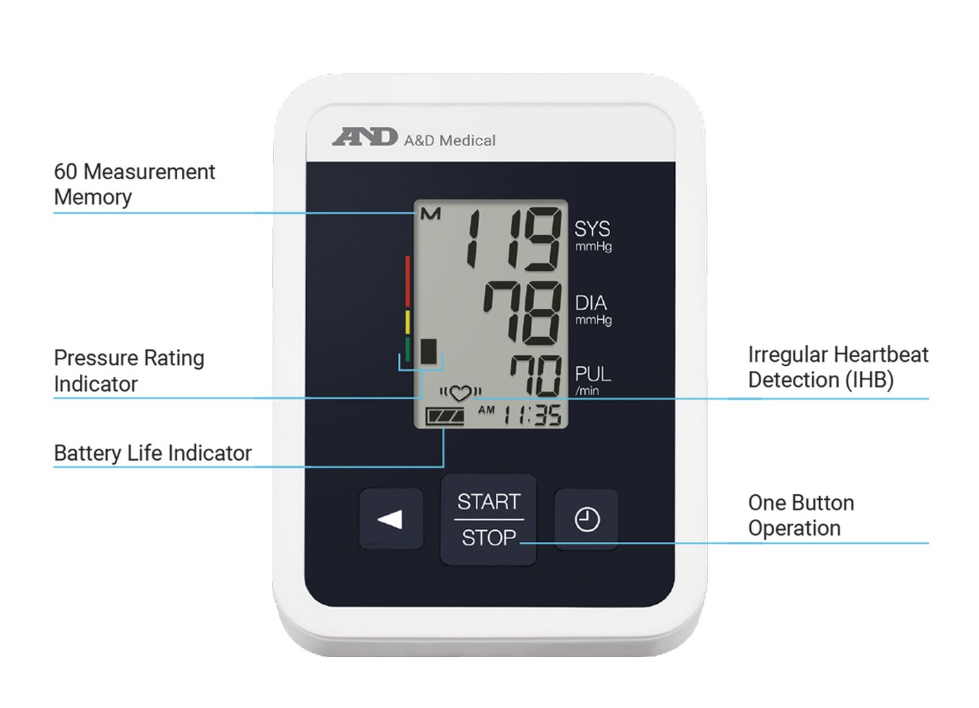 A&D Blood Pressure Monitors has benefits of speed and accuracy at the push of a button. With one button operation, irregular heartbeat detection, a pressure rating indicator, and a 5 year monitor warranty, this monitor has everything you need to monitor your blood pressure.